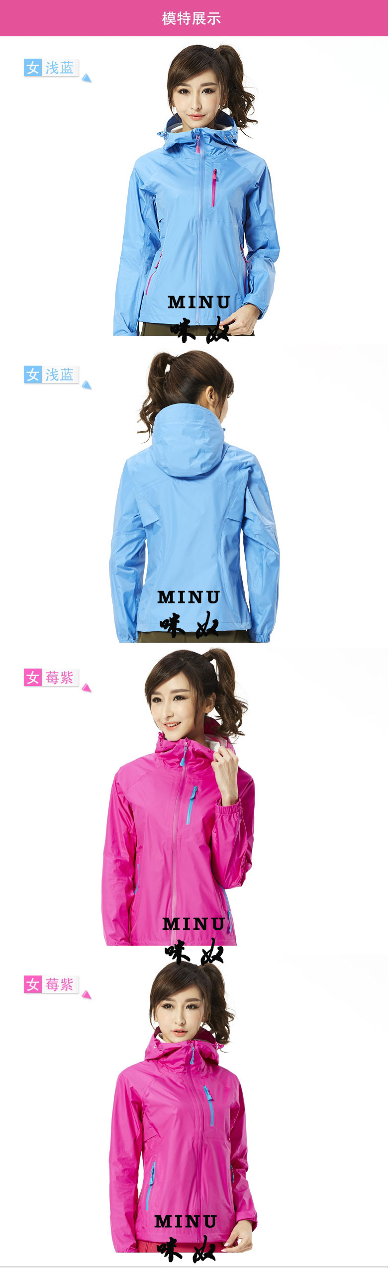 女士藍色沖鋒衣定做
